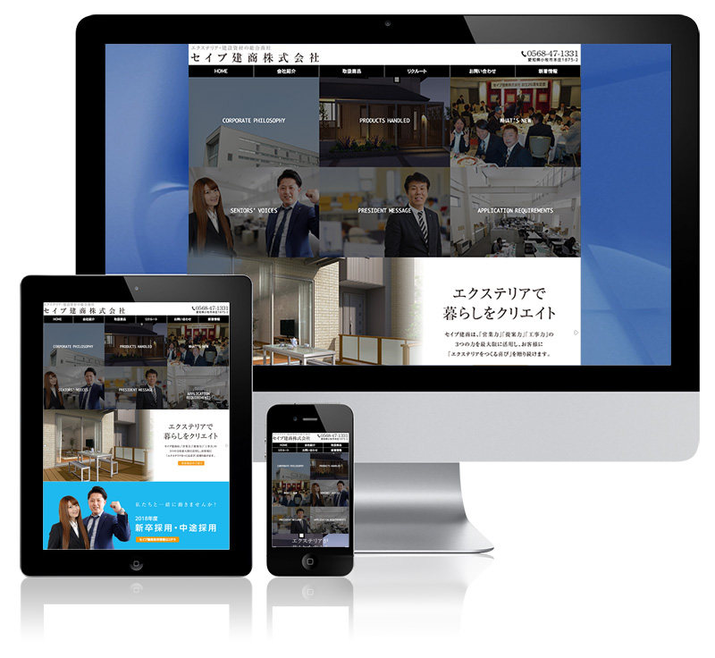 セイブ建商様のホームページをリニューアルさせていただきました。 サイト制作に伴い、写真撮影・写真修正も含めて制作させていただきました。 スマホ対応とするためにレスポンシブにて構築致しました。